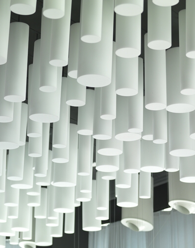 - Bafles rectangulares o redondos suspendidos del techo.